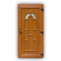 Laminált díszpaneles bejárati ajtó 5 kamrás műanyag profil, 70 mm tokmélység, 5 pontos zárral, zárbetéttel, 3 darab erősített 3D pánttal |