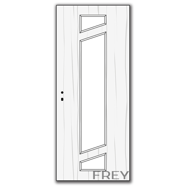 Az elkészült teli sík felületű ajtólapon utólag kivágásokat készítünk. A kivágások alakja lehet négyzet, téglalap, kör, ellipszis, rombusz, paralelogramma, mértékének a megmaradó lap merevségének biztosítása szab határt. A kivágásba vagy üveg vagy két összeforgatott laminátumból készült 10 mm vastag betét kerül. Szegése üvegbeszorító léccel történik, az egyenesek szín-azonosak, az íves vonalúak egyszínű festett felületűek. |